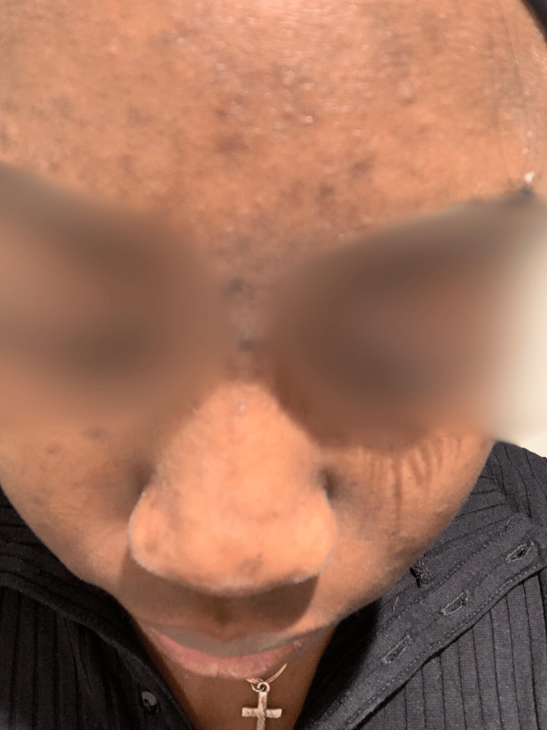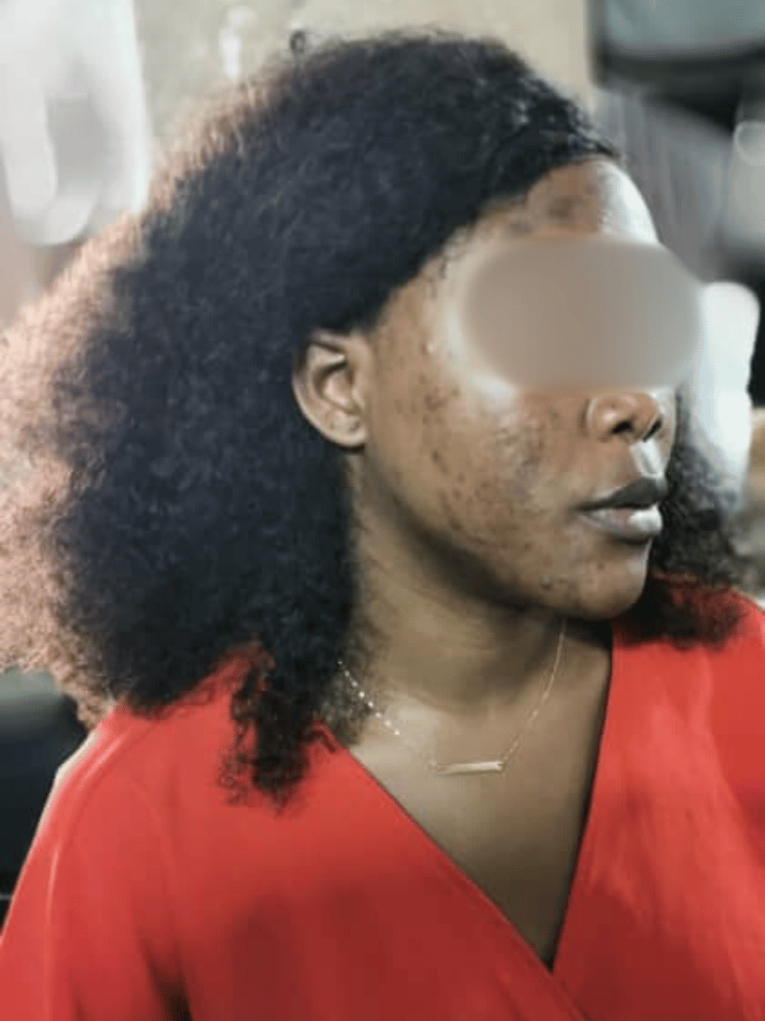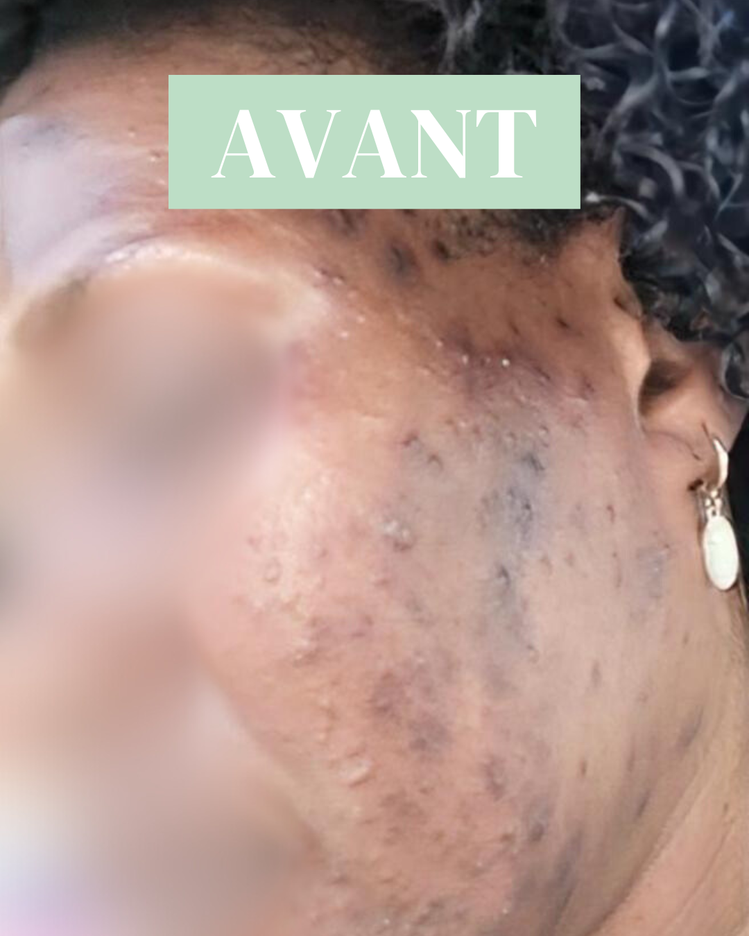 Vanessa avait beaucoup d'acné et des tâches pigmentaires, au bout de deux mois la peau est beaucoup plus lisse et lumineuse.